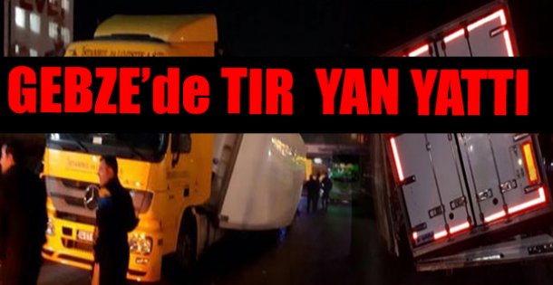 Kaza Gebze Center Köprüsü altında dün akşam saat 20.30 sıralarında meydana geldi. Eren Tetik yönetimindeki 34 ET 6953 plakalı TIR Akşehir'den aldığı 20 ton eti İstanbul'a götürdüğü sırada sürücünün direksiyon hakimiyetini kaybetmesi sonucu kontrolden çıkarak dorsesi karayolunda yan yattı. Kazayı gören diğer sürücüler polis ve sağlık ekiplerinden yardım istedi. Kaza nedeniyle D-100 Karayolu İstanbul istikameti ulaşıma kapandı. Kazada şans eseri ölen yada yaralanan olmadı. TIR dorsesindeki etler başka bir TIR'a taşındıktan sonra çekici yardımıyla dorse yol kenarına çekildikten sonra yol yeniden ulaşıma açıldı. Polis kazayla ilgili soruşturma başlattı.