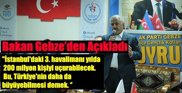 KOCAELİ (AA) - Ulaştırma, Denizcilik ve Haberleşme Bakanı Ahmet Arslan, "İstanbul'daki 3. havalimanı yılda 200 milyon kişiyi uçurabilecek. Bu Türkiye'nin daha da büyüyebilmesi demek. Sadece seneye açıldığında, birinci fazında tam 100 bin, 2025'te de tam 225 bin kişiye iş verecek." dedi.