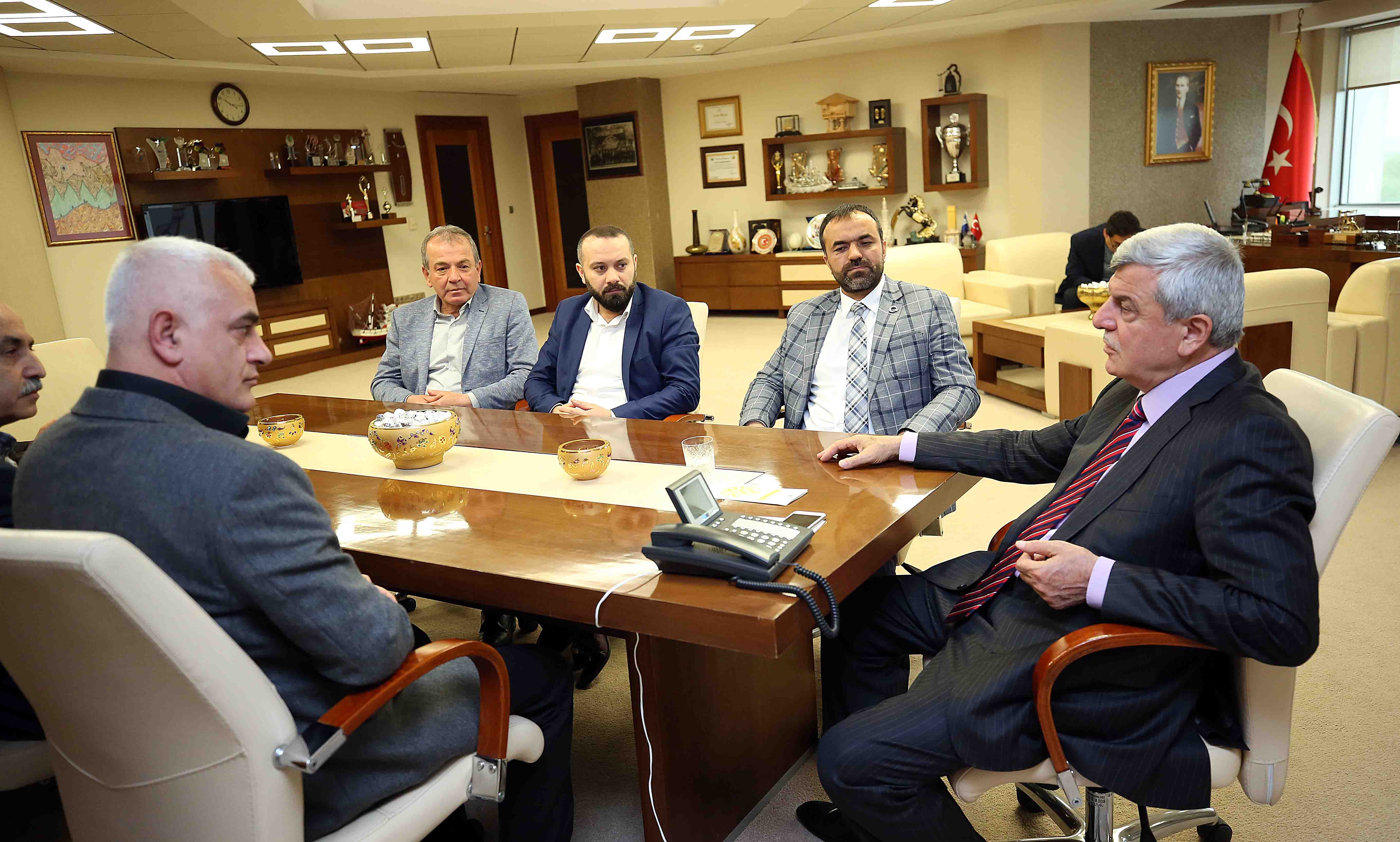 Uzun aradan sonra Kocaeli’ye gelenler, şehrimizin gelişim ve değişimini, “Büyük dönüşüm, şaşırtıcı gelişme” gibi cümlelerle takdir ediyorlar diyen Büyükşehir Belediye Başkanı İbrahim Karaosmanoğlu, “Milletimizin ferasetine, irfanına, vizyonuna güveniyor, bu ferasetten, irfandan ve vizyondan güç alıyoruz. Hamdolsun milletimizi mahcup etmedik, etmiyoruz ve etmeyeceğiz de” şeklinde konuştu. “Milletimiz de bugüne kadar her seçimde bize olan desteğini artırarak, çalışmalarımıza verdiği güvenoyunu tazeliyor, bizi mahcup etmiyor” hatırlatması yapan Başkan Karaosmanoğlu, “13 yıl geride kaldı ve milletimiz desteğini bizlere vermeye devam ediyor. Türkiye tarihinde yerel yönetim başlığına Kocaeli’nin ismini altın harflerle yazdırdık” ifadelerini sarf etti. Derince Esnaf ve Sanatkârlar Odası Başkanı Bekir Sargın da, yeni aldıkları oda binası hakkında Başkan Karaosmanoğlu’na bilgi verirken, “Üyelerimize daha verimli ve kaliteli hizmet vereceğiz. Eğitim çalışmaları yapacağız. Ülkemize ve kentimize katkı sunmak için üzerimize düşen sorumluluğu yerine getireceğiz” dedi. Görüşme karşılıklı öneri ve taleplerin ifade edilmesiyle sona erdi.