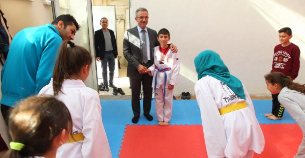Tekvando grubunun eğitimlerine katılan Gebze Belediye Başkanı Adnan Köşker, genç sporcuların eğitimlerin ne aşamada olduğuna dair bilgileri hocalarından aldı. Gençlerin diğer arkadaşlarını da spora teşvik etmelerini isteyen Gebze Belediye Başkanı Adnan Köşker, “Her çocuğun ve gencin en az bir spor dalıyla ilgilenmesi, bir müzik aleti çalabilmesi gelişimleri için çok önemli. Biz Gebze Belediyesi olarak gençlerimizi her alanda destekliyoruz. Spor faaliyetlerinde bulunmaları için teşvik ediyor, imkanlar sunuyoruz. Çünkü biliyoruz ki spor ile uğraşan gençleri kötü alışkanlıklardan uzak tutmak çok daha kolay oluyor. Ben burada bulunan velilerimize de teşekkür ediyorum, ailenin desteği bu anlamda çok önemli” dedi. Başkan Köşker sporcularla hatıra fotoğrafı çektirdi.