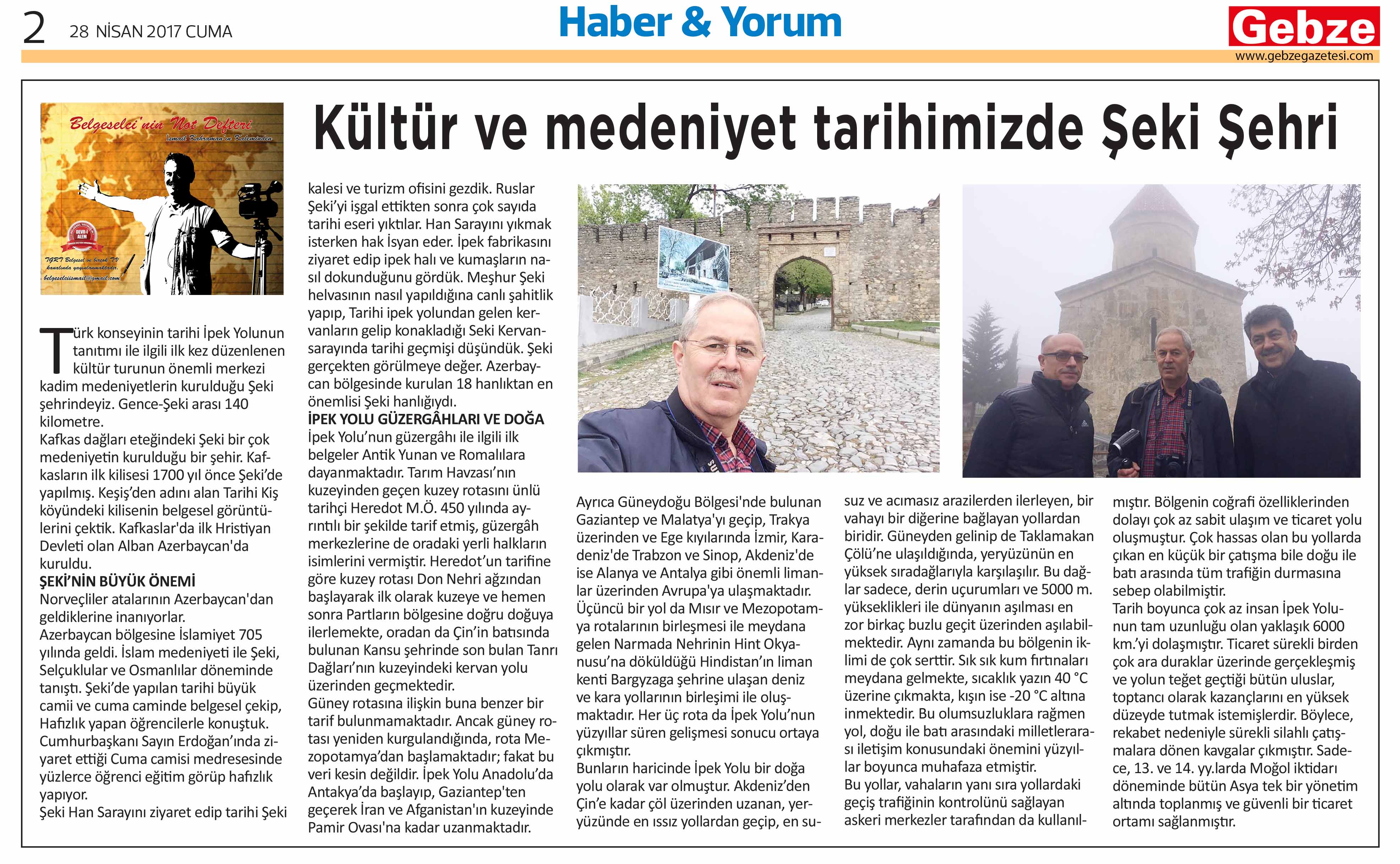 Şeki Han Sarayını ziyaret edip tarihi Şeki kalesi ve turizm ofisini gezdik. Ruslar Şeki’yi işgal ettikten sonra çok sayıda tarihi eseri yıktılar. Han Sarayını yıkmak isterken hak İsyan eder. İpek fabrikasını ziyaret edip ipek halı ve kumaşların nasıl dokunduğunu gördük. Meşhur Şeki helvasının nasıl yapıldığına canlı şahitlik yapıp, Tarihi ipek yolundan gelen kervanların gelip konakladığı Seki Kervansarayında tarihi geçmişi düşündük. Şeki gerçekten görülmeye değer. Azerbaycan bölgesinde kurulan 18 hanlıktan en önemlisi Şeki hanlığıydı.