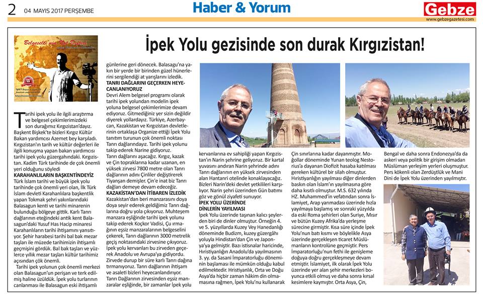 Devri Alem belgesel programı olarak tarihi ipek yolundan modelin ipek yoluna belgesel çekimlerimize devam ediyoruz. Gitmediğiniz yer sizin değildir diyerek yollardayız. Türkiye, Azerbaycan, Kazakistan ve Kırgızistan devletlerinin ortaklaşa Organize ettiği İpek Yolu tanıtım turunun çok önemli noktası Tanrı dağlarındayız. Tarihi ipek yolunu takip ederek Narine gidiyoruz.