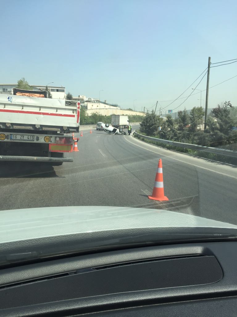 Dilovası rampası Gebze istikametinde binek araç takla attı.