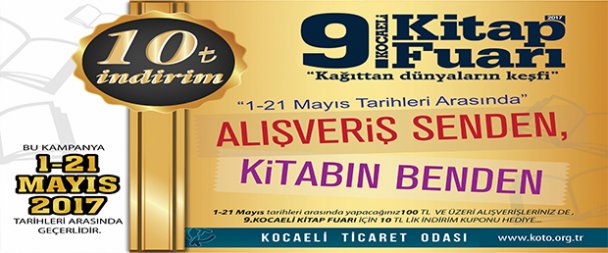 Kocaeli Ticaret Odası’nın Kitap Fuarı’na özel olarak düzenlediği ‘Alışveriş Senden Kitabın Benden’ kampanyası bu yıl da başladı. KOTO üyesi 300’ü aşkın işyerlerinden 100 TL ve üzeri alışveriş yapanlar hem ekonomiye can verecek hem de kitap indirim kuponu kazanacak