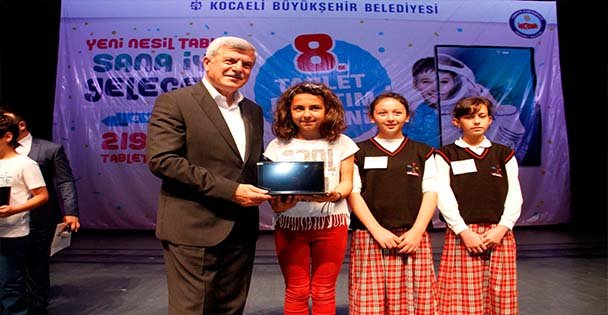 Kocaeli Büyükşehir Belediyesi 6. sınıf öğrencilerine yönelik hayata geçirdiği yeni nesil tabletlerin dağıtımını İzmit ilçesinden sonra Gebze’de yapılan törenle gerçekleştirdi. Osman Hamdi Bey Kültür Merkezi’nde yapılan törenle öğrenciler tabletlerine kavuştu. 6. sınıf öğrencileri bu sene 29 bin 472 tablet bilgisayarına kavuşurken, Büyükşehir Belediyesi bugüne kadar toplam 219 bin 233 adet tableti çocukların hizmetine sundu.