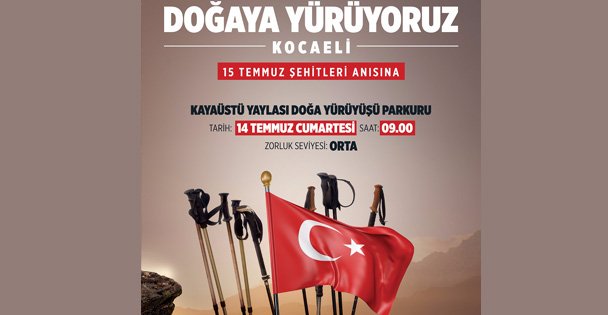 Büyükşehir’in ‘’Doğaya Yürüyoruz Kocaeli’’ etkinliği bu hafta sonu 15 Temmuz Demokrasi Şehitlerimizin anısına düzenlenecek