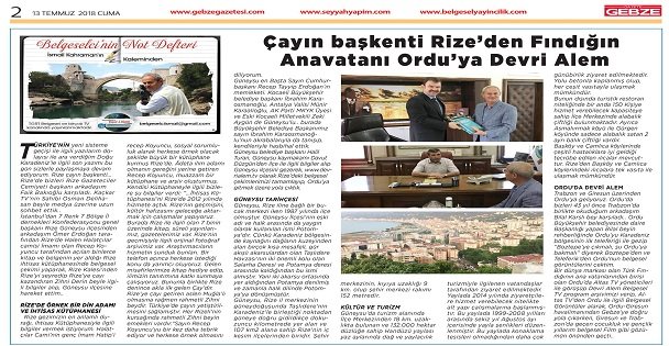 Bir dünya markası olan Türk Fındığının ana vatanlarından birisi olan Ordu’da Altas TV yöneticileri ile görüşüp Devri Alem Belgesel TV program arşivimizi verip, Altas TV’den Ordu ile ilgili Belgesel Görüntüler alarak, Ordu-Giresun havalimanından Gebze’ye doğru yola çıkarken, Giresun ve Trabzon’da geçen çocukluk ve gençlik yıllarım belgesel Film gibi gözümün önünden geçti..