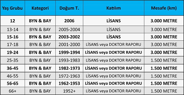 § Start, 1500 mt. ve 3000 mt. Kategorileri için ayrı ayrı verilecektir.