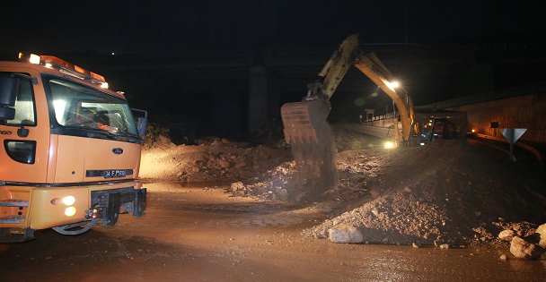 Ekipler daha sonra yolun tahribat gören bölümünde çalışma yaptı.