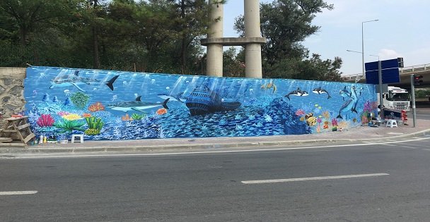 Kocaeli’nin birçok ilçesinde kent estetiğini geliştirmek amacıyla yapılan resim boyama çalışmaları Gebze ilçesinde devam ediyor. Projenin üçüncü aşaması kapsamında Tatlıkuyu Köprüsü güney yan yol duvarı ve İstanbul Caddesi Topçular Köprüsü mevkiindeki duvarlara akvaryum ve manzara resimleri yapılıyor. Çalışmalarla Gebze ilçesinin önemli noktaları, estetik acıdan zenginleştiriliyor. Halkın beğenisini kazanan çalışmalar, ilerleyen günlerde Kocaeli’nin diğer ilçelerinde de yapılacak.
