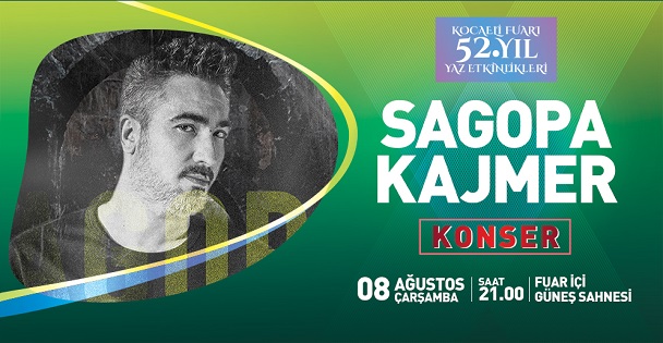 Büyükşehir Belediyesi tarafından düzenlenen Kocaeli Fuarı 52. yıl yaz etkinlikleri kapsamında ünlü rap şarkıcısı Sagopa Kajmer 08 Ağustos Çarşamba Saat 21.00’da Kocaeli Fuarı Güneş Sahnesinde konser verecek. Büyükşehir Belediyesi tarafından düzenlenen ücretsiz konserde Kocaelili hayranlarıyla buluşacak Rap müzik sanatçısı Sagopa Kajmer, canlı sahne performansıyla sahne alacak.