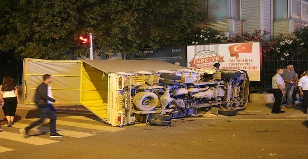Yoldan çıkarak kaldırıma devrilen kamyonetteki 3 kişi bulundukları yerde mahsur kaldı. Kazayı görenlerin haber vermesi üzerine olay yerine itfaiye, polis ve sağlık ekipleri sevk edildi.