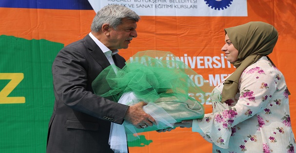 Kocaeli Büyükşehir Belediyesi Meslek ve Sanat Eğitim Kurslarında eğitim gören evlenecek kızlar için kursiyer arkadaşları tarafından hazırlanan KO-MEK Bohçası, mutlu bir evliliğin en güzel simgesi oldu. KO-MEK Bohçasını geçtiğimiz aylarda alan Mefruşat kursiyeri Fatma Tarakçı evlendi. Tarakçı’yı bu mutlu gününde aynı zamanda bohçasının hazırlanmasında katkıları olan usta öğreticileri ile kursiyer arkadaşları yalnız bırakmadı.