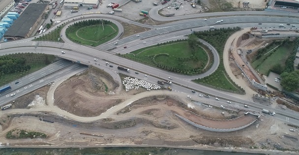 Kocaeli Büyükşehir Belediyesi, Dilovası şehir merkezine giriş çıkışları rahatlatmak için Batı Kavşağında düzenleme çalışmaları gerçekleştiriyor. Çalışmalar çerçevesinde kavşakta ilave kollar ve köprüler oluşturularak bağlantılar sağlanacak. Devam eden çalışmalar kapsamında proje içerisinde yapılacak olan 3 adet köprüden birinin ayakları tamamlandı. Projenin toprakarme panel montajı, fore kazık ve yağmur suyu imalatları devam ediyor.
