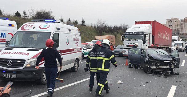 Alınan bilgiye göre, Anadolu Otoyolu İstanbul istikameti Bekirdere rampasında Nuran Horasan yönetimindeki 34 UC 8931 plakalı otomobil ve Erdem Eynel idaresindeki 34 KH 7935 plakalı otomobiller ile Hüseyin Dünyamalı'nın kullandığı İran plakalı tır çarpıştı.