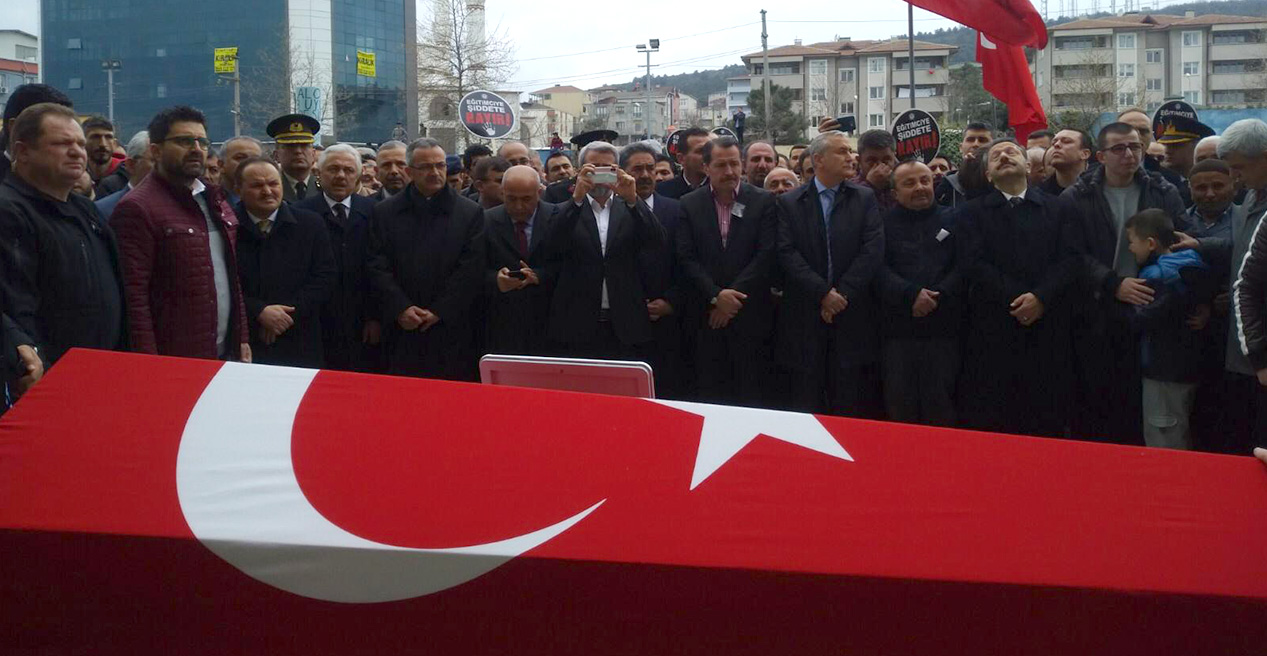 Dün Gebze'de Atatürk Anadolu Lisesi'nde F.Ç isimli öğrenci tarafından bıçaklanarak öldürülen müdür yardımcısı Necmettin Kuyucu için bugün okulunda cenaze töreni düzenlendi. Acı olay nedeniyle okulların bugün tatil edildiği Gebze'de, eğitimcilere yönelik şiddete tepki göstermek amacıyla yürüyüş düzenlendi. Gebze Eşref Bitlis Parkı'nda bir araya gelen Memur-Sen Genel Başkanı Ali Yalçın, Türk EğitimSen Genel Sekreteri Musa Akkaş, Türk Eğitim-Sen Genel Başkan Yardımcısı Selahattin Dolgun, sendikanın şube başkanları, öğretmenler, sivil toplum kuruluşlarının temsilcileri, ilçe sakinleri ve öğrencilerden oluşan binlerce kişi, öğretmen Necmeddin Kuyucu'nun öldürüldüğü okula kadar yürüdü. Yürüyüşe katılanlar 'Eğitimciye şiddete hayır' yazılı pankart ve dövizler taşıdı.