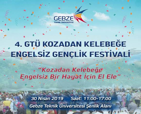 Çeşitli sosyal kurum ve kuruluşların üyelerini, özel eğitim kurumlarının temsilcilerini, dernek mensuplarını, GTÜ akademik ve idari personelini ve lise ile üniversite öğrencilerini bir araya getirecek olan "GTÜ Kozadan Kelebeğe Engelsiz Gençlik Festivali" 30 Nisan 2019 tarihinde “Kozadan Kelebeğe Engelsiz Bir Hayat İçin El Ele” sloganıyla Gebze Teknik Üniversitesi Şenlik Alanı’nda gerçekleşecek.