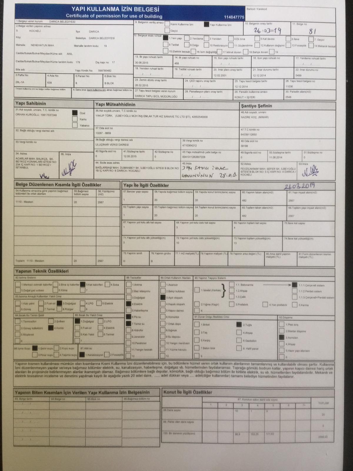 Konuyu basından öğrenmiş olup detayını incelediğimizde Darıca’da yaptığımız halihazırda oturumun başladığı 34 daire 4 adet İşyerinden oluşan bir sitenin 26 Mart 2019 tarihinde iskanının alındığı, iskan işleminin hızlıca alınması site sakinlerinin abonelik vb. konularda mağduriyet yaşamaması için Darıca Belediyesi bilgisi dahilinde SGK Kurumundan ilişiksizlik belgesi alınmadan işleme devam edilmiştir. Site sakinlerinin mağdur olmaması için yapılan bu işlem, bizlerinde sonradan öğrendiği üzere yeni yapılacak inşaatlar için ruhsat alımlarında geçici süre ile 1 yıl boyunca müteahhit olarak gözükememe durumunu ortaya çıkarmıştır.