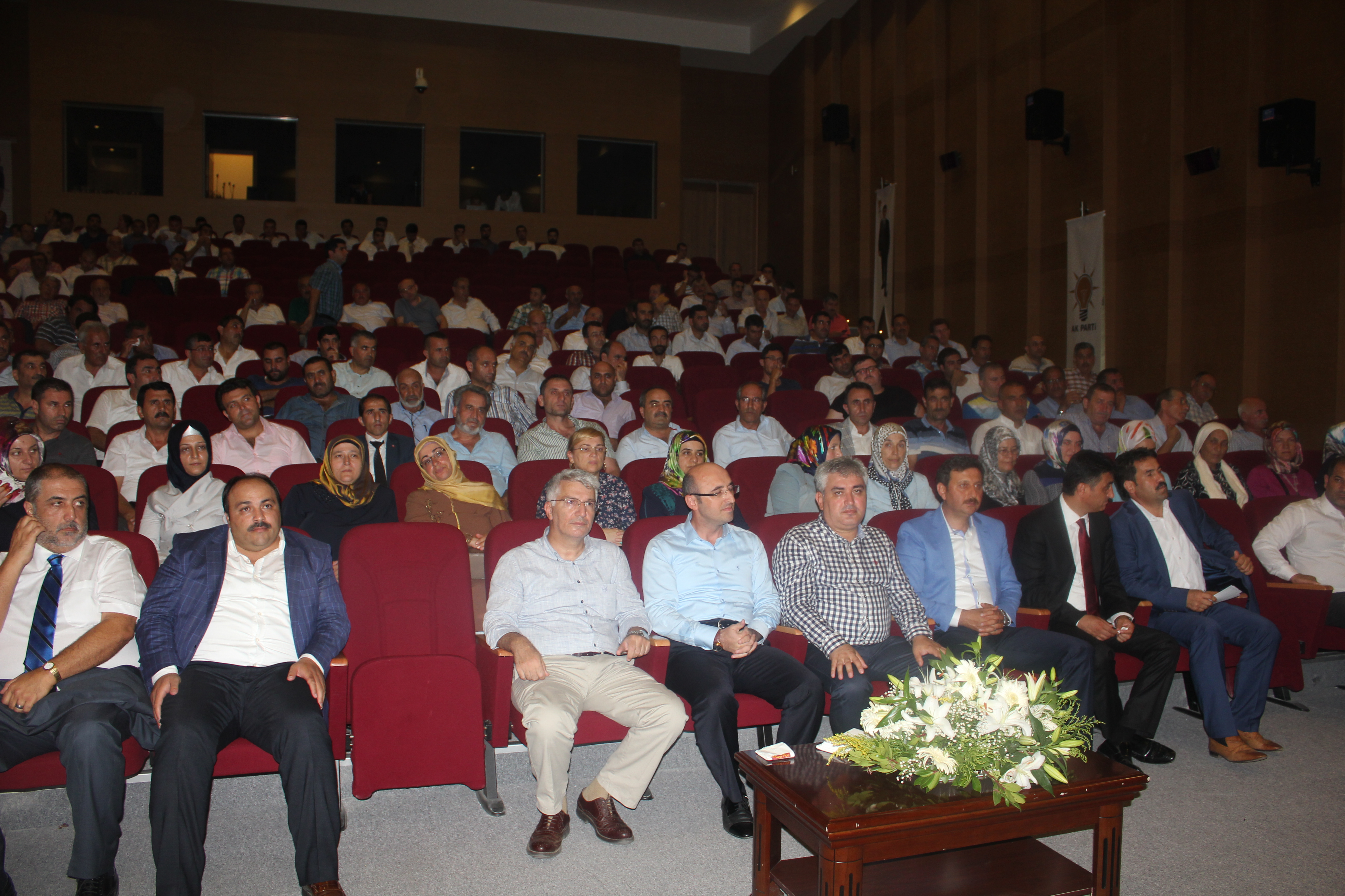 Son konuşmayı yapan İl başkanı Şemsettin Ceyhan ise “7 Haziran’dan sonra bir çok konuda notlar aldık, eksik ve oy kayıplarının nedenlerini değerlendirmeye çalıştık. 7 Haziran’dan sonra seçim sonuçları bizi birinci parti ama tek başına da hükümet kuramayacak sayıda milletimiz teveccüh gösterdi. %41 oy için halkımıza minnettarız. Bu alınmış oydan sonra Başbakanımıza görev tevdi edildi. Neticesinde koalisyon görüşmelerine samimi olarak başladık, ciddi görüşmeler yapıldı. Neticede çıkan sonuç koalisyon için uygun zemin oluşmadı. MHP ne söylendiyse hayır dedi. MHP’nin tavrını anlamakta zorluk çektiğimiz gibi onlara oy vermiş milletimizde anlam veremiyor. Önümüzde bir seçim tekrarı var. Bize seçim ve sandık yolu gözüktü. Seçimlerden sonra her birimiz buruk sevinç yaşadı, bir şey olsa da toparlayabilsek dedik. İşte seçimle karşı karşıyayız. Bize düşen kırgınlıkları bir kenarı bırakıp AK Parti’yi tek başına iktidara getirmek için çalışmaktır.”dedi.