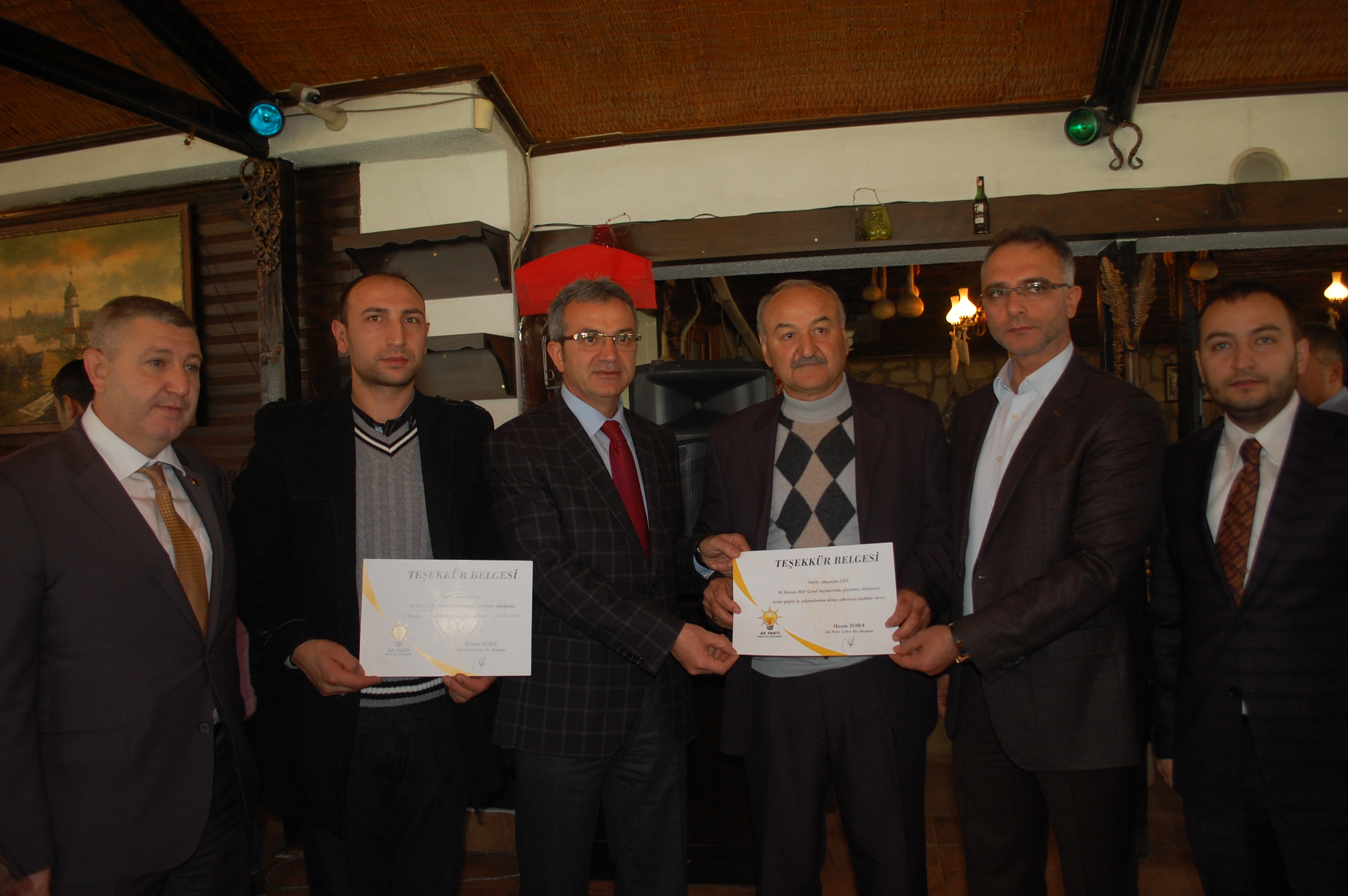 Programda konuşma yapan Gebze İlçe Başkanı Hasan Soba, “1 Kasım’da çok çalışıp güzel bir sonuç aldık. Bu sonucu hep beraber aldık. Bütün teşkilatlar seçimlerden başarıyla çıktı. 7 Haziran seçim sonuçları ortadaydı. AK Parti’nin Tek başına iktidar olmadığı bir ortamda yaşananlar, terör, ekonomik sıkıntılar ortadaydı. 7 Haziran’dan sonra teşkilatlar silkelendi seferberlik ilan edildi. Genel Merkez’den başlayan güzel hava mahalle teşkilatlarına kadar yansıdı. 11 puan Gebze’de oyumunuzu artırdık ve 120 binden 128 bine çıkardık. 1 Kasım seçimlerinde herkes sandığına sahip çıktı teşkilatlara teşekkür ediyorum.”Dedi.