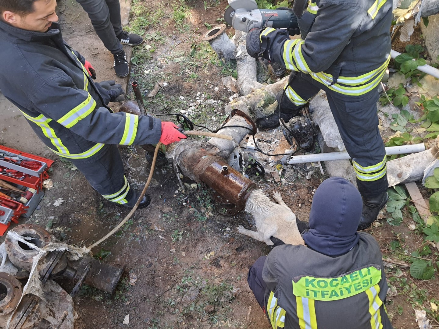 Kocaeli Büyükşehir Belediyesi İtfaiye ekipleri, Gölcük ilçesi Değirmendere Merkez Mahallesinde bir köpeğin demir boruya sıkıştığı ihbarı ile harekete geçti. Olay yerine giden Gölcük İtfaiye Grup Amirliği ekipleri köpeği sıkıştığı yerden kurtarmak için çalışma başlattı.