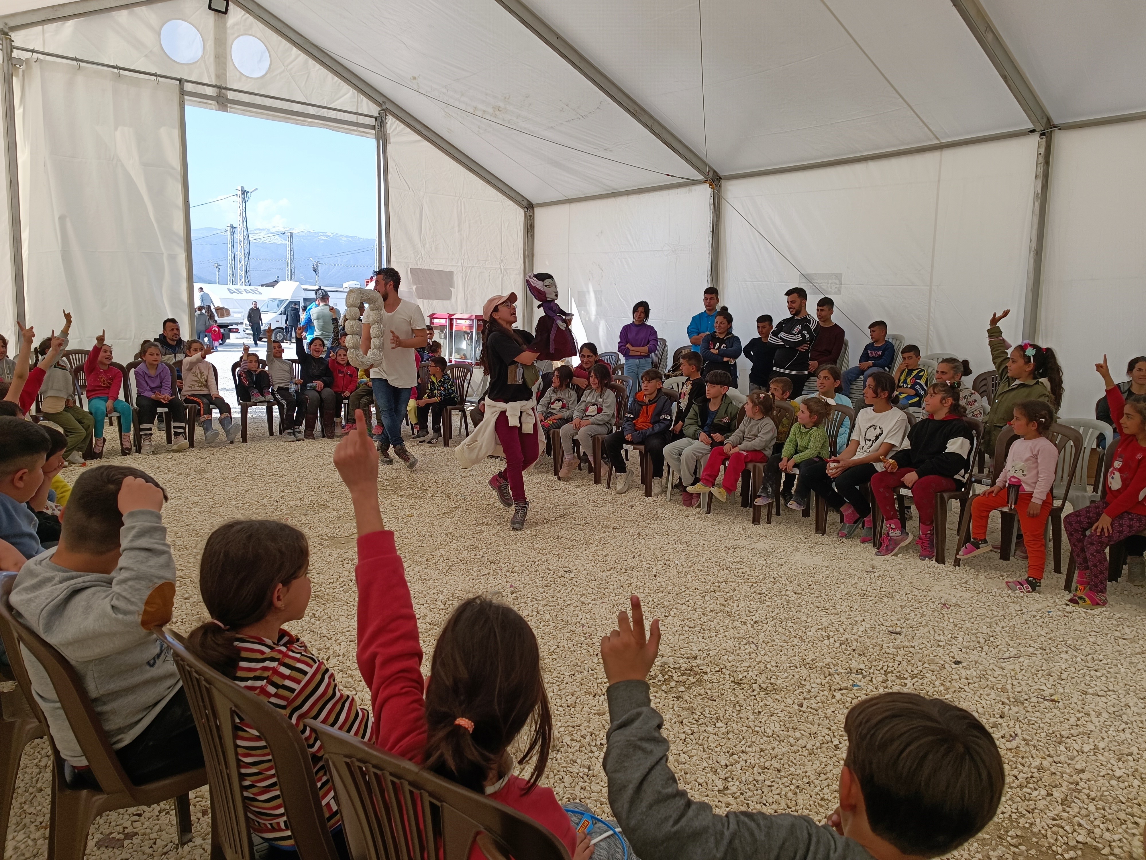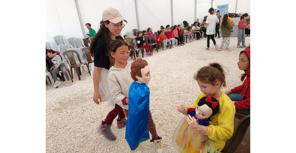 Türkiye'nin 11 ilinde hasara yol açan deprem felaketinin en yoğun hissedildiği illerden biri de Hatay oldu. Şehirde bir yandan enkaz kaldırma çalışmaları sürerken, diğer yandan da yaralar sarılıyor. Kurulan çadır kentlerde sinema, tiyatro, kukla gibi farklı gösteriler düzenleyen ekipler, çocukların bir an da olsa depremi unutmalarını sağlıyor.