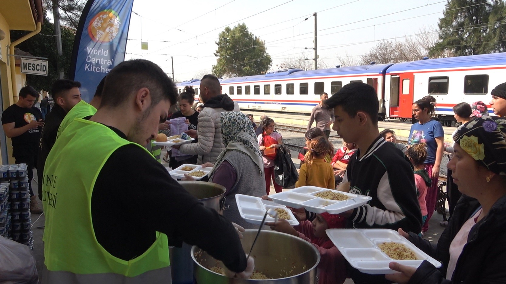 Kendisi de bir depremzede olan TCDD Taşımacılık AŞ Osmaniye Yolcu Hizmetleri Şefi Doğan Yolcu, “6 Şubat gününden beri bölge müdürlüğümün, başkanlığımın ve genel müdürlüğümün bütün vermiş olduğu görev sonucu 7/24 depremzede insanlarımızla beraber çalışmaktayız. Burada ilk günden bu yana tamamen devlet tarafından, kurumumuz tarafından her türlü ihtiyaç giderilmektedir. Çocuklarımızın, yaşlılarımızın ihtiyaçlarını gidermek için kalben bu ihtiyaçları karşılamak için çalışıyoruz. Bekleme salonumuzda tamamen tüm ihtiyaçlar giderilmektedir. Günlük de 2 bin 500 kişiye yemek verilmekte, ısınması trenlerimizin içerisinde 28 derece olup battaniyeye bile gerek duyulmamaktadır. Su ihtiyacından, sağlık ihtiyaçlarına kadar tamamı giderilmeye çalışılıyor. TCDD taşımacılık AŞ 6 bölge müdürlüğümüz, daire başkanımız ve genel müdürlüğümüz her istediğimizi, her ihtiyacımızı kara yoluyla Adana'dan buraya 1 buçuk saat içerisinde bize yetiştirmekte, gerekli yardımları da halkımıza, depremzedelerimize ulaştırmaya çalışıyoruz. Burada kocaman bir Türkiye mutfağı, marketi, burada para geçmiyor sadece kalben çalışan insanların yüreğiyle ödenen vefa borcudur” dedi.