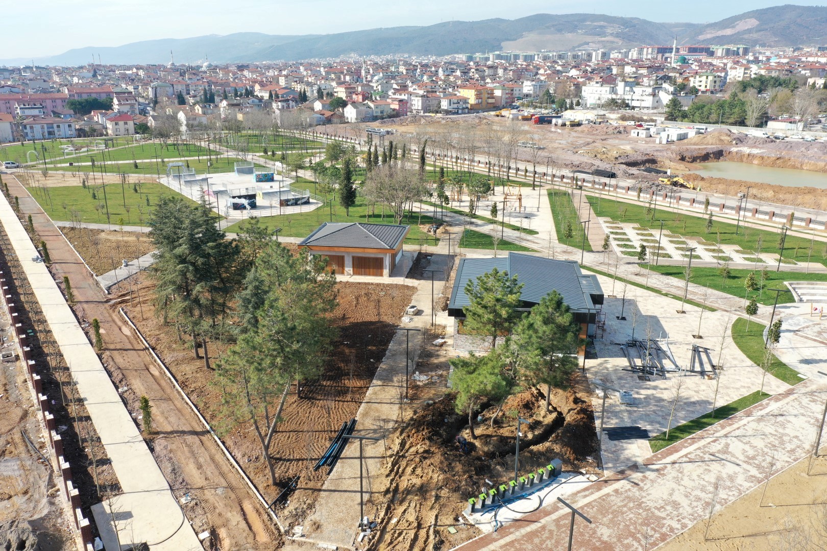 Sağlıklı yaşam parkını çevreleyen bisiklet yolu imalatı ekiplerce tamamlandı. Bisiklet yolu çizgileri çizilecek. Parkı çevreleyen solüsyonlu yürüyüş yolu imalatına başlandı. Park içerisindeki ara yürüyüş yollarının granit ve bazalt küptaş imalatları %90 oranında tamamlandı. Parkta çim serimi devam ediyor. Parkın yeşillendirilmesi kapsamında 520 adet büyük ağaç dikimi yapıldı.