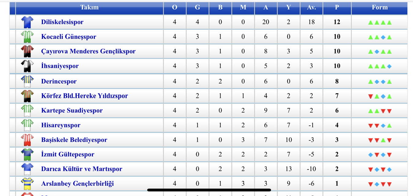 Yeni sezonun ilk maçında kendi sahasında Martı Sporu 5-1, ardından deplasmanda İzmit Gültepe’yi 4-0, sahasında Doğanspor’u 6-1 ve geçtiğimiz hafta Kartepe Suadiye Spor’u 5-0 gibi farklı skorlarla mağlup ederken ligde namağlup ünvanına sahip tek takım oldu.