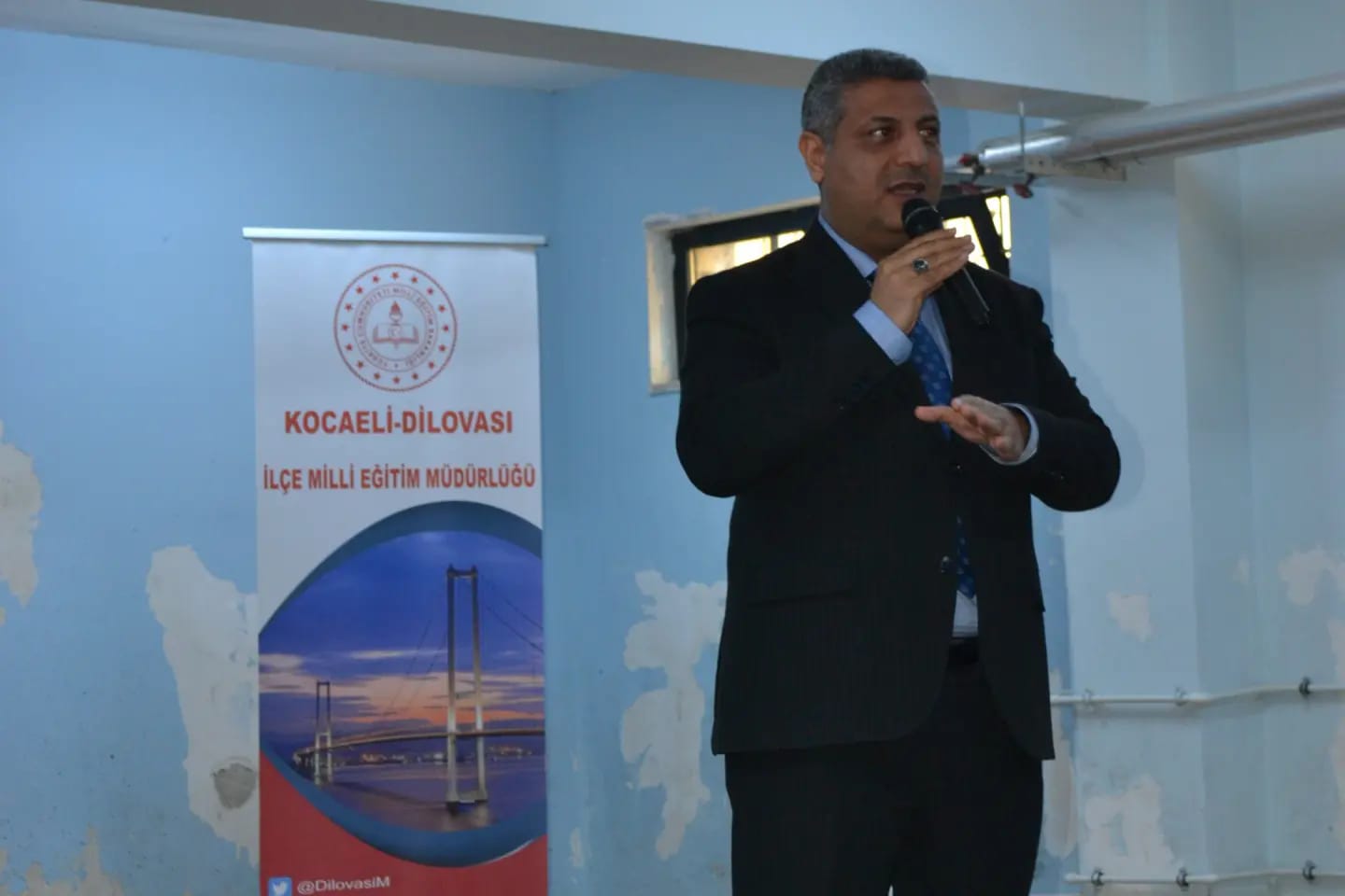 Murat Balay Ağrı’dan dilovasına gelen ve İpek halı ticareti yapan bir ailenin çocuğu olarak dilovasın da Dünyaya gelip çok zor şartlar altında okuduğunu ve 50 bin nüfuslu 13 bin öğrencinin okuduğu dilovasında milli eğitim müdürü olmanın onurunu yaşadığını söyledi.