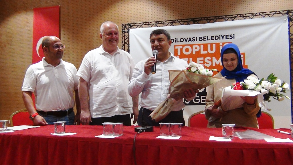 Tabi biz bu çalışmaları yaparken, mesai arkadaşlarımızın mutlu olması, şevkle çalışması içinde elimizden geleni yapmaya özen gösteriyoruz. Ötekileştirmeden, ayrıştırmadan hem çalışan arkadaşlarımızın hakkını koruyor, hemde halkımızın en güzel hizmetleri alması için çalışıyoruz. Bugün, çalışma arkadaşlarımızın sosyal haklarının dışında maaşlarında yüzde 30’luk bir iyileştirme zammının sözleşme töreni için bir aradayız. Hepiniz birer aile sorumluluğu taşıyan yada geleceğe dönük aile kurma telaşı içerisinde olan arkadaşlarımızsınız. Hepinizin en iyi koşullarda ve en iyi şartlarda çalışması bizim için önemlidir. Biz büyük bir aileyiz. Sizlerin mutlu olması demek, tüm hizmetlerin en iyi şekilde yapılabilmesi demektir. Bir olalım, birlik olalım.