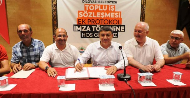 Dilovası Belediyesi ve Genel İş Sendikası tarafından, Belediye Kültür Merkezi’nde gerçekleşen imza törenine Başkan Şayir, Başkan Yardımcıları, meclis üyeleri, Genel İş Sendikası Kocaeli Şube Başkanı Vedat Küçük ve işçiler katıldı.