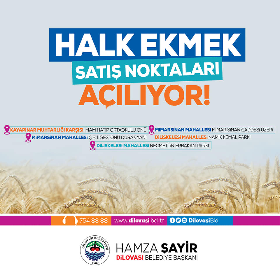 Dilovası Belediye Başkanı Hamza Şayir’in daha önce yaptığı girişimler sonrası 7 Nisan’da Dilovası’nda başlaması beklenen halk ekmek satışları ülkemizde yaşanan Koronavirüs sonrası durdurulmuştu. 1 Haziran’dan itibaren normal hayata geçilmesinin ardından Nisan ayında başlaması beklenen ancak ertelenen halk ekmek projesi içinde start verildi. Halk ekmek satışı Haziran ayı itibari ile satışa sunulacak.