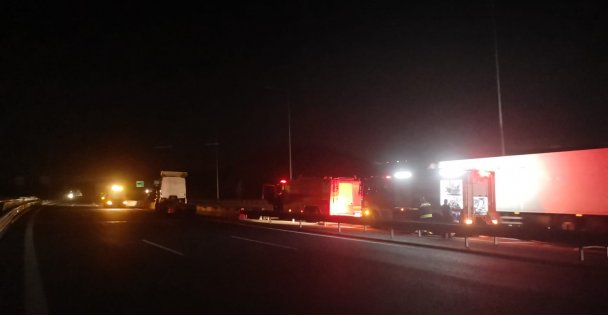 Alınan bilgiye göre, Kuzey Marmara Otoyolu D-100 kara yolu kavşağı İstanbul istikametinde seyreden Mustafa Özdemir idaresindeki 34 JG 5654 plakalı pomza taşı yüklü tırın dorsesinde henüz belirlenemeyen bir nedenle yangın çıktı.