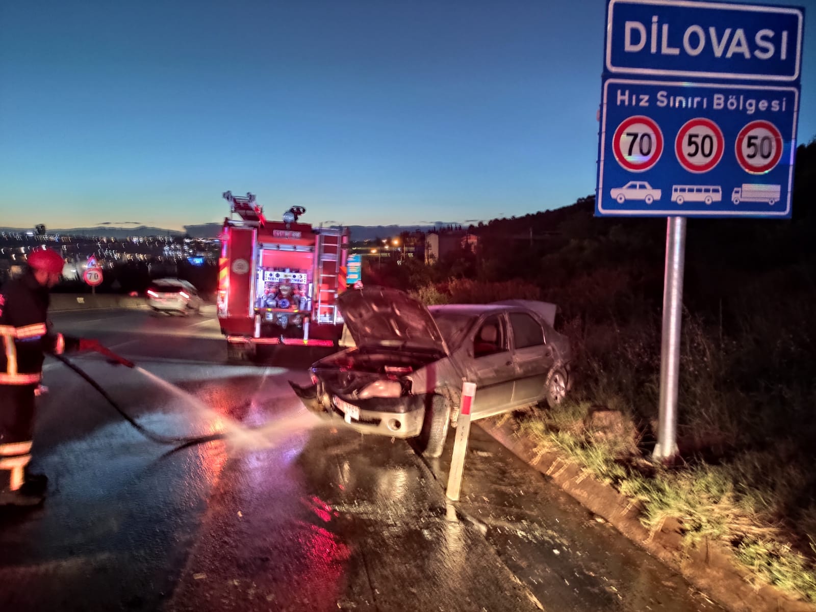 Alınan bilgiye göre, D-100 kara yolunda İstanbul istikametine giden Cevdet Karlıdağ'ın kullandığı 41 U 2161 plakalı otomobil, Tavşancıl mevkisinde yol kenarındaki trafik levhasına çarparak alev aldı.