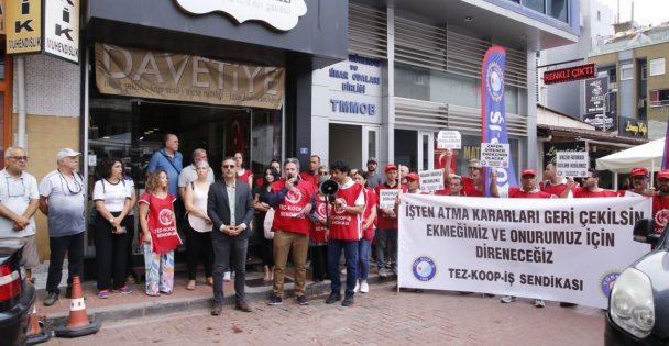 Oda önünde basın açıklaması yapan Tezkoop-İş Sendikası Gebze Şube Başkanı Engin Şevket Şimşek, uzun yıllardır örgütlü oldukları oda da iki arkadaşlarının toplu iş sözleşmesine rağmen işten çıkartıldığını belirtti. Kocaeli Şube’nin aylardır işçi çıkarma konusundaki ısrarına karşı direndiklerini ancak 25 Ağustos’ta yapılan yönetim toplantısında iki çalışanın işten çıkarılmasına karar verildiğini belirten Şimşek, “Kararın ardından hemen eylem kararı aldık ve odanın iki arkadaşımız için aldığı karardan geri çekilmesini istiyoruz.
