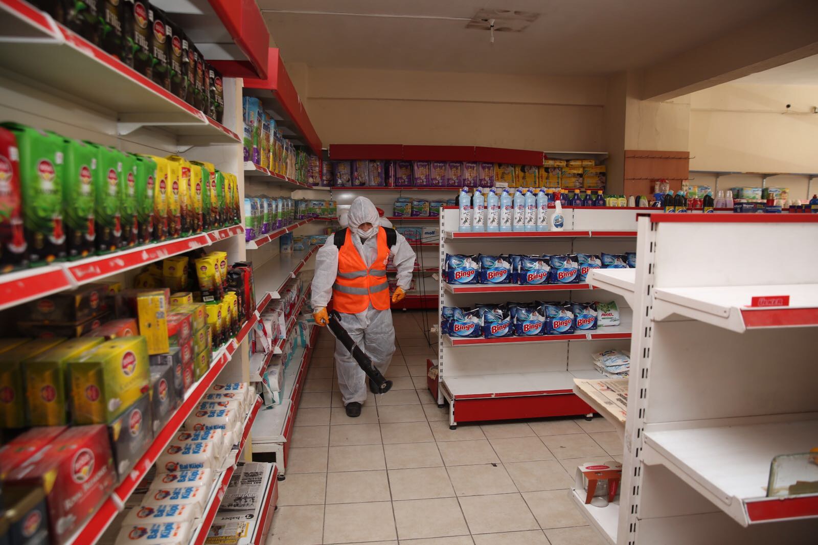 Çayırova Belediyesi dezenfekte ekipleri, ilçede bulunan tüm esnafları dezenfekte ediyor. Salgın virüsle mücadele etkin bir çalışma yapan Çayırova Belediye Başkanı Bünyamin Çiftçi’nin yakından takip ettiği titiz ve hassas çalışmaları 24 saat sürdüren ekipler, ilçedeki esnafları mahalle mahalle dezenfekte ediyor. Birinci turu tamamlayan ve ikinci turu da bitirmek üzere olan dezenfekte ekiplerinin virüsle mücadelede yaptığı etkin çalışma ilçe halkının taktirini kazandı . Üç vardiyalı ekiple 7/24 çalışan ve halkın yoğun olarak kullandığı alanları her gün dezenfekte yapan ekipler ilçede faaliyet gösteren esnafların ikinci tur dezenfektesini gerçekleştiriyor.