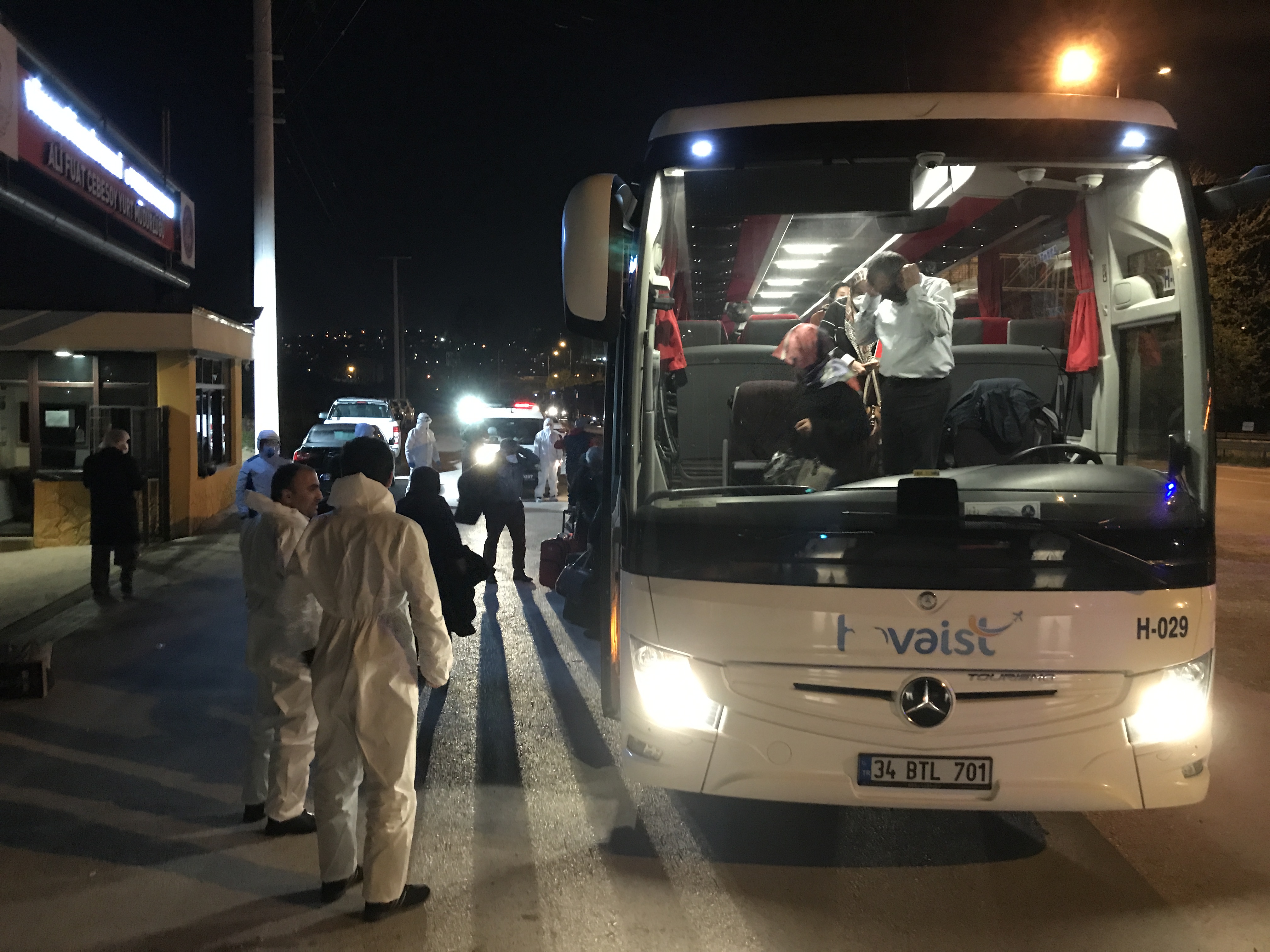Sağlık kontrollerinin ardından yolcular, polis eşliğinde 12 otobüsle karantina için önceden boşaltılan ve dezenfekte edilen Gençlik ve Spor Bakanlığı Kredi ve Yurtlar Kurumuna bağlı, İzmit ilçesindeki Ali Fuat Cebesoy Öğrenci Yurdu'na yerleştirildi.