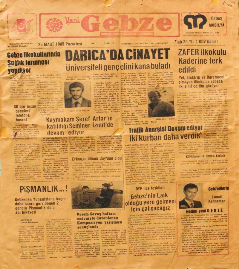 Tarihler 25 Mart 1985 bundan tam 36 yıl önce Gebze gazetesini kurmaya karar verip yola çıktık Gebze de büyük boy gazete basacak Matba olmadığı İçin İzmit de Hürsöz Gazetesi matbaasın da rahmetli Selahattin Telserin de manevi desteği ile ilk gazetemizi yayınlamaya başladığımız yıllar da 25 yaşında genç bir gazete patronu olarak o günlerde yaşadığım mutluluk ve heyecanı hiç unutamıyorum