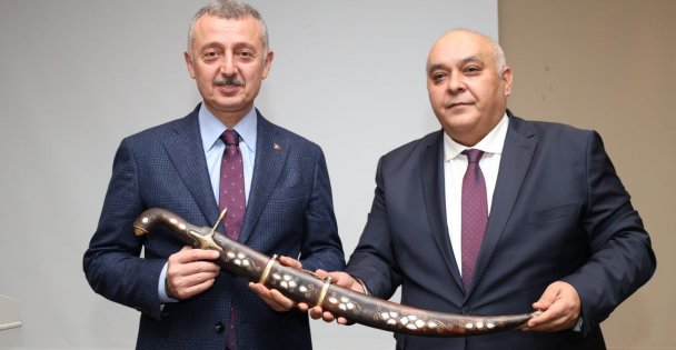 Programa katılan hemşehrilerine çok teşekkür ederek konuşmasına başlayan Türkiye Gaziantep Konfederasyonu Başkanı Hasan Özaygut ise, “Bu manevi atmosferde birlikte olmaktan dolayı mutluluk duyuyoruz. İnşallah nice 102 yıllar mutluluk ve huzurla geçer. Bir daha düşman elinde zorluklarla karşılaşmayız. Hepinize çok teşekkür ediyorum” dedi. Programın sonunda Türkiye Gaziantep Konfederasyonu Başkanı Hasan Özaygut, Başkan Büyükakın’a yöresel motiflerle süslenmiş bir kılıç hediye etti.