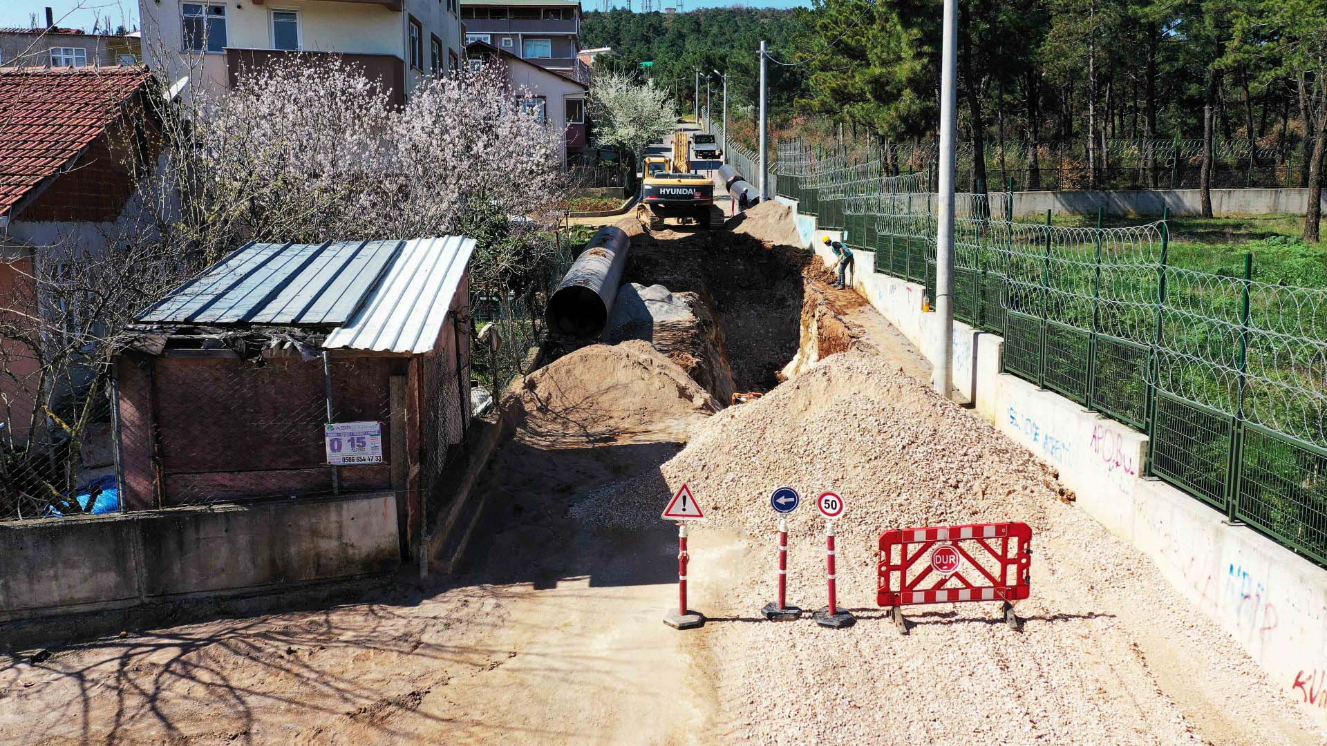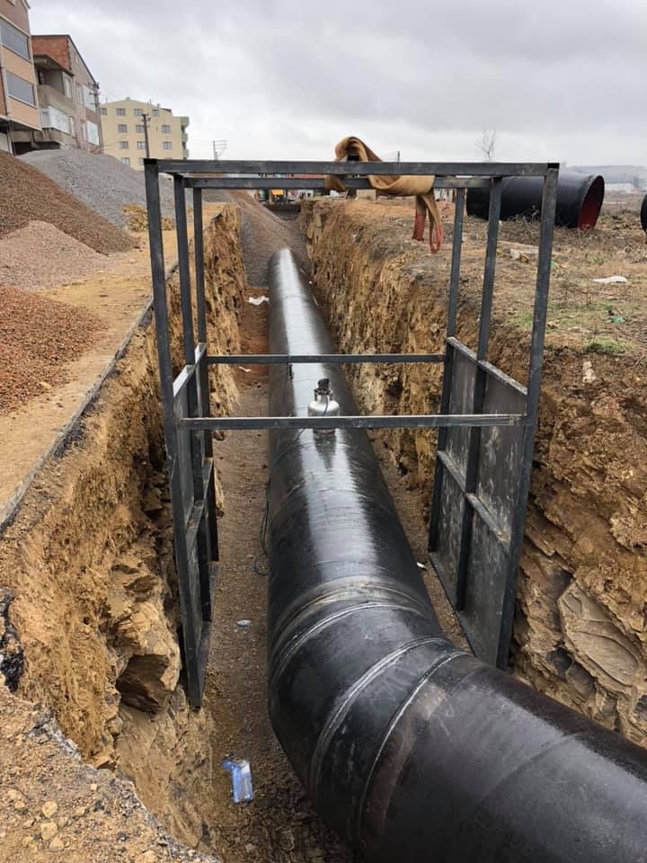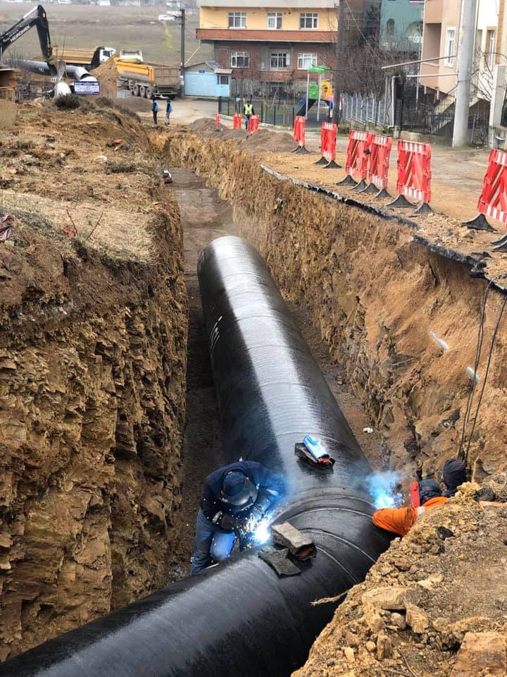 Kocaeli Büyükşehir Belediyesi İSU Genel Müdürlüğü, tüm ilçelerde kesintisiz içmesuyu hizmetini eksiksiz sürdürebilmek adına çalışmalarına azami gayretle devam ediyor. Bu kapsamda Gebze ve Çayırova ilçelerinde geçtiğimiz yıl birkaç defa arıza yaşanarak uzun süreli kesintilere neden olan 1200 mm çapındaki CTP boru hattın deplasesi inşasının ilk bölümü tamamlandı. Ekonomik ömrünü dolduran CTP borular 1300 mm çapında çelik borular ile değiştirilmesiyle birlikte bölgede yaşanılan uzun süreli su kesintilerinin önüne geçilecek. 4.902.300,00 TL ihale bedeliyle gerçekleştirilen proje kapsamında 1450 metre uzunluğunda 1300 mm çelik boru ile birlikte 1 vana,2 vantuz ve 1 tahliye odası imalatları tamamlandı. Değiştirilmesi gereken diğer kısımlar için yatırım planlaması devam etmektedir.