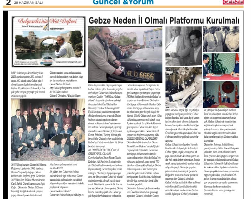 36 yıldan beri Gebze’nin il olma mücadelesi ile ilgili daha önce Gebze gazetesinde belgeselcinin not defteri köşesinde yazdığım makalemi sizlerle paylaşmak istiyorum.