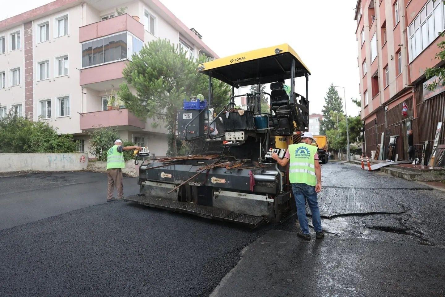 Gebze’de hummalı sıcak asfalt serim çalışmaları. Gebze Belediyesi Fen İşleri Müdürlüğüne bağlı ekipler mahallelerde asfalt serim çalışmaların devam ediyor.
