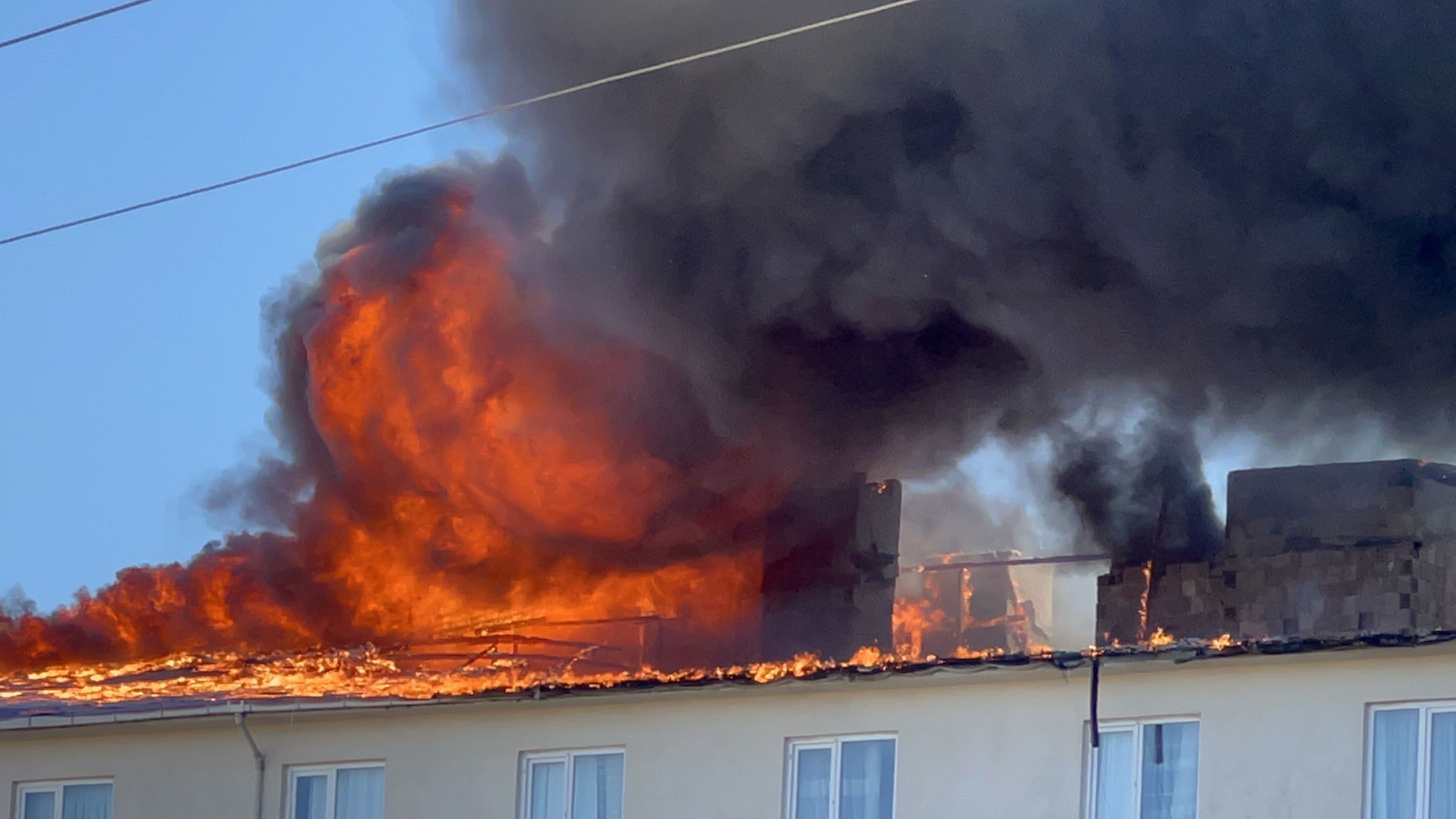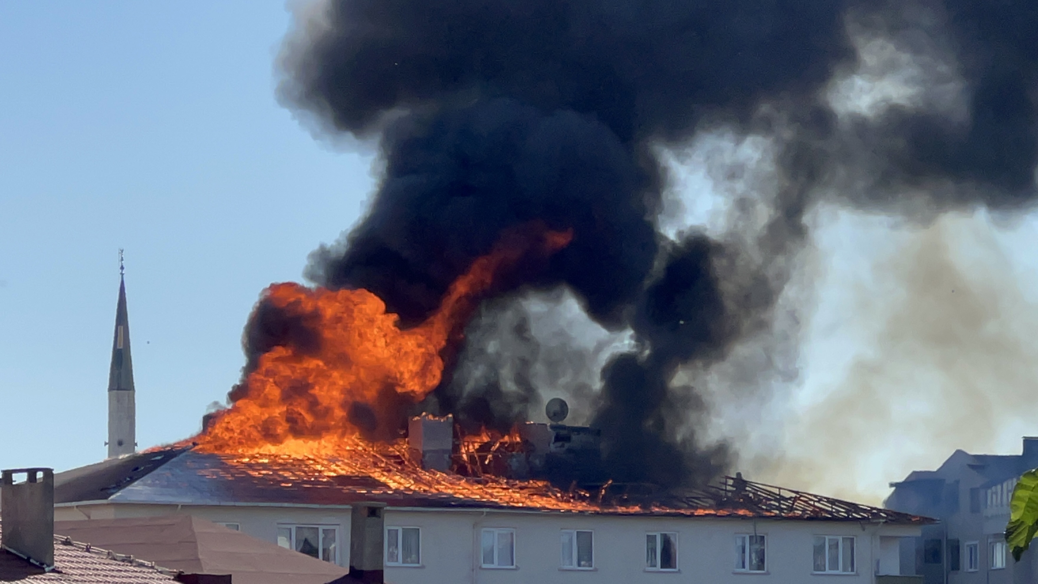 Merdivenli araçların yardımıyla çatıya ulaşan itfaiye ekipleri, alevleri yaklaşık 1 saatte kontrol altına aldı.