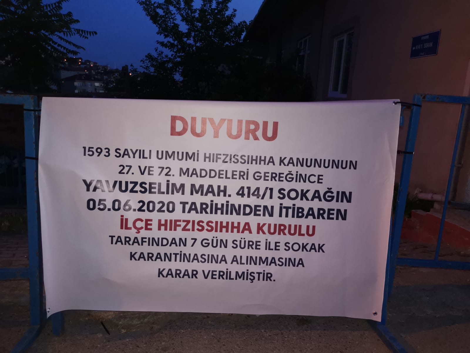 İlçe Hıfzıssıhha Kurulu, sokakta 7 gün süreyle karantina tedbirlerinin uygulanmasına karar verdi.
