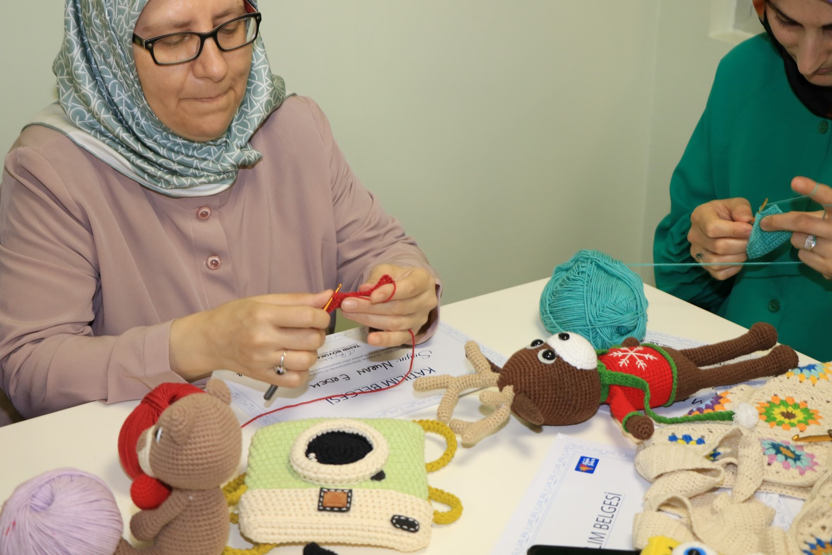 Derslerde; evde kenarda kalan örgü ipleri, geri dönüştürülmüş malzemeler materyal olarak değerlendirilerek, ortaya çıkan ürünlerde tığ işi sık iğne ve trabzan örgü tekniği kullanılıyor. Kursiyerler, eğitmenlerin hazırladığı tarif ve şablonları okumayı öğrenerek, tekniklere uygun ürün hazırlamaya geçiyor. Kursu başarı ile tamamlayanlara katılım belgesi takdim ediliyor. Ayrıca 9-12 yaş arası çocuklara yönelik el sanatları atölyesinde, çocukların el becerileri ve ince motor gelişimlerine katkı sağlayacak sanatsal aktiviteler düzenleniyor.