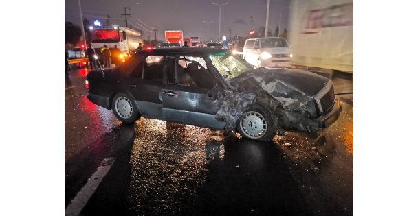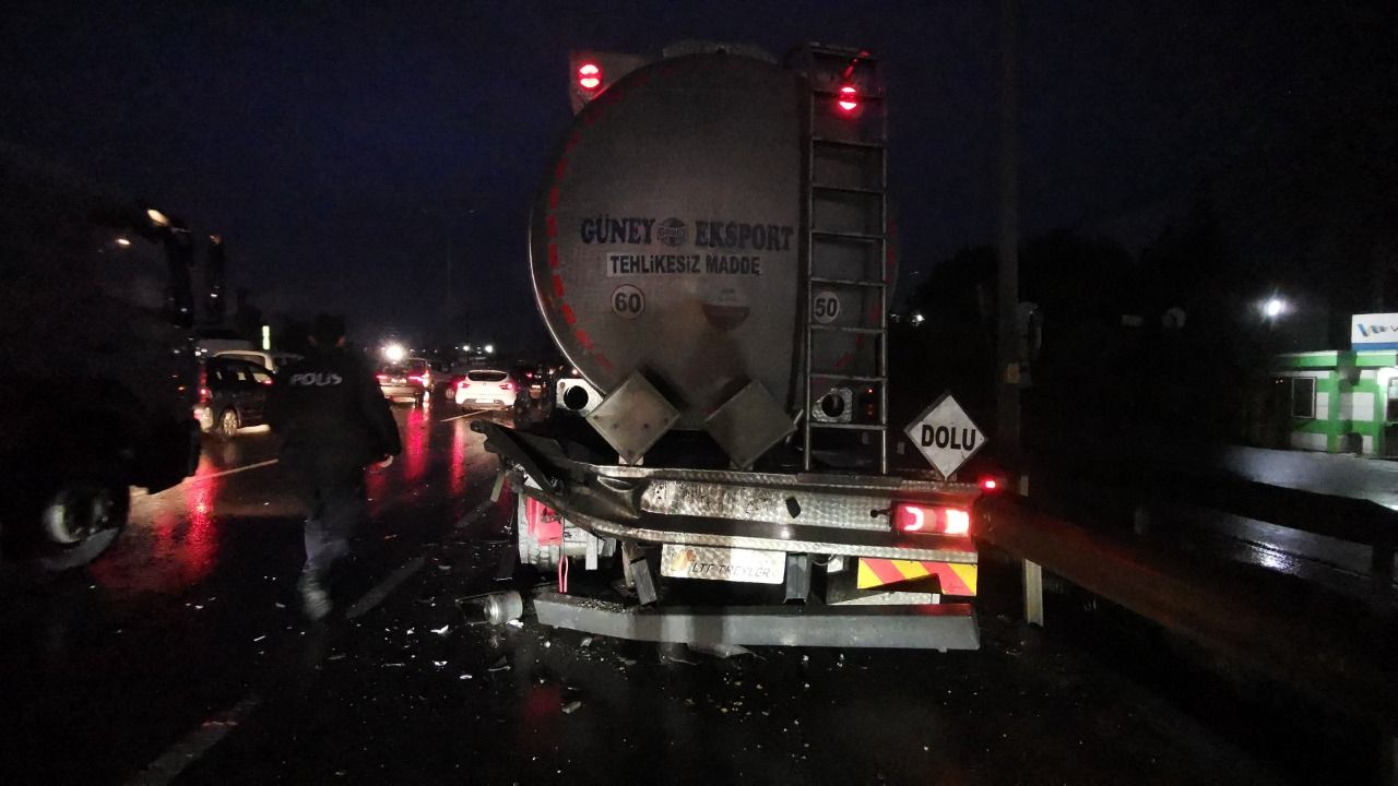 Gebze ilçesinde seyir halindeki tankere çarpan otomobilin sürücüsü yaralandı.
