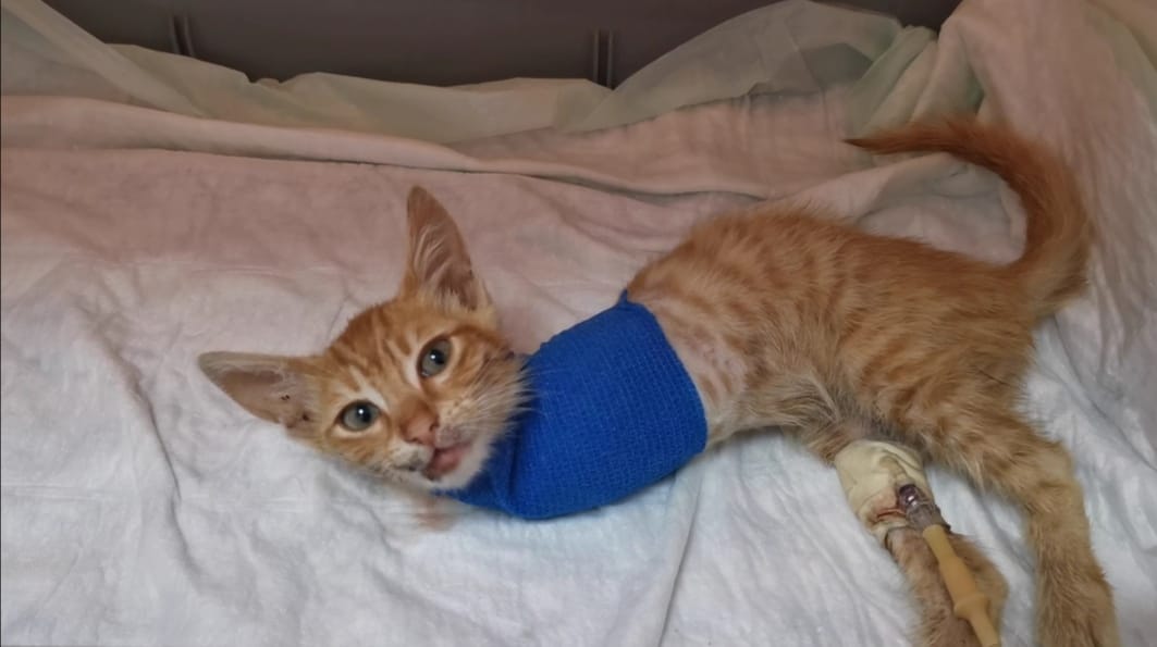 Ön bacakları kesilen ve yoğun bakıma alınan kedi yavrusu, iyileşmesinin ardından sahiplendirilecek.