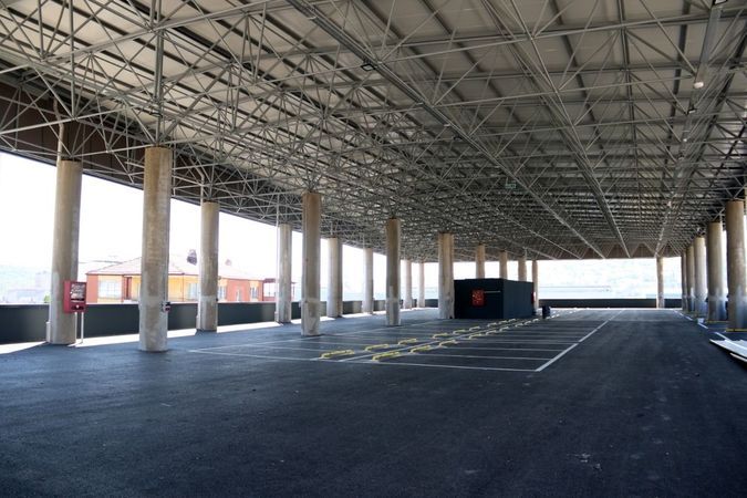 Dilovası Katlı Otopark ve Pazar Yeri Cumhuriyet Mahallesi’nde 7 bin 398 metrekarelik bir alan üzerine inşa edildi. Araç sahiplerinin güvenli bir şekilde araçlarını park edebileceği, pazarcıların da sağlıklı bir ortamda tezgâhlarını kuracağı 4 katlı yapıda neredeyse tüm imalatlar tamamlandı. Son olarak uzay kafes sistemli çatının montajını gerçekleştiren ekipler yapıda artık son rötuşları yapıyor. Zemin katta 57 araçlık otopark ve pazar yeri, 1. bodrum katta 53 araçlık otopark ve pazar yeri, 2. bodrum katta 38 araçlık otopark, 3. bodrum katta ise zabıta ve muhtar odaları, bay-bayan mescit, elektrik odası, tuvalet ve 17 araçlık otopark yer alacak.