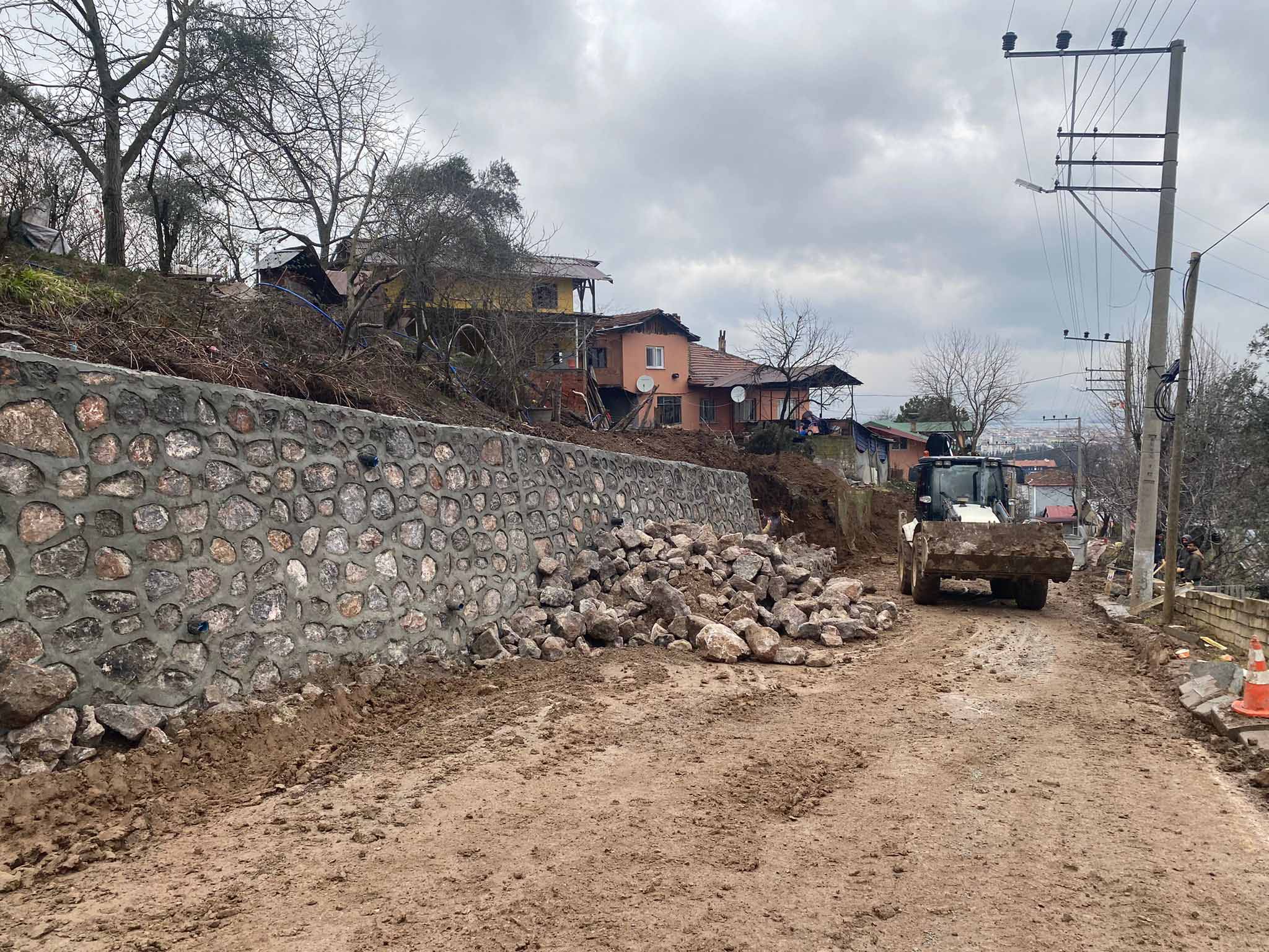 Kocaeli Büyükşehir Belediyesi tarafından Gölcük Hamidiye Okyar Caddesinde yol genişletme çalışması ve taş duvar yapım çalışmaları başlatıldı. Hamidiye Okyar Caddesinde yolun virajlı olması sebebiyle trafik akışını olumsuz yönde etkileyen kısımda yol genişletiliyor. Genişletilen kısımda yolun yamaç olması sebebiyle de toprak kayması, heyelan yaşanmaması için taş duvar imalatı yapılıyor.